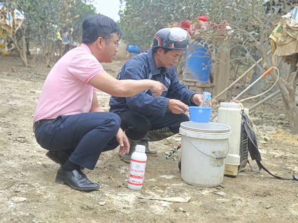 Cán bộ kỹ thuật công ty CP Chăn nuôi C.P hướng dẫn người dân xử lý môi trường
