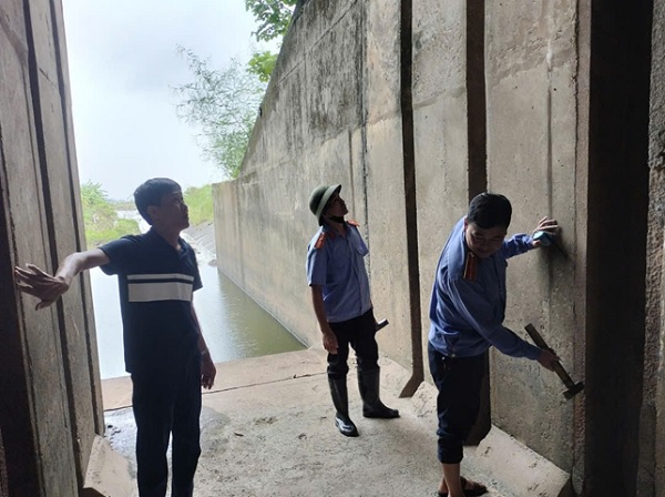Một số hình ảnh cán bộ Kiểm soát viên đê điều kiểm tra kè, cống trước khi mưa bão
